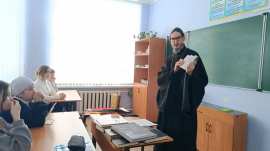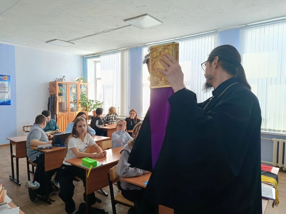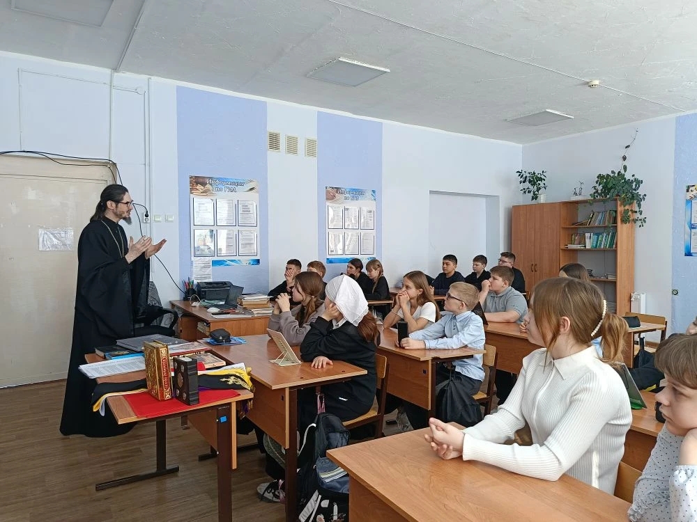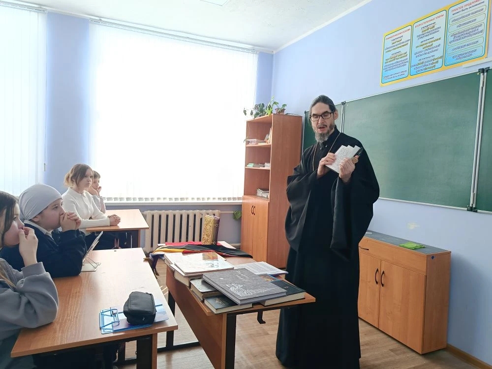 11 марта 2026 настоятель храма святителя Николая Чудотворца с.Сабакаево провел лекцию - беседу для учеников МБОУ СШ им В.И. Ерминеева с. Сабакаево.
