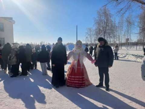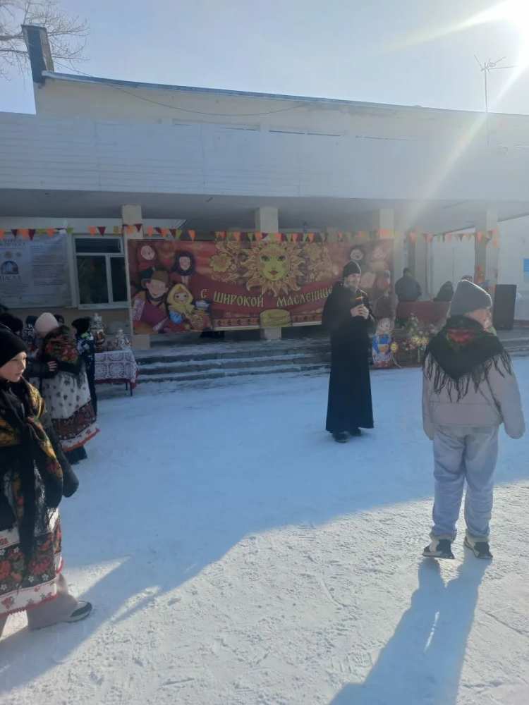 22 февраля 2026 года настоятель храма Собора Архистратига Михаила и прочих Небесных Сил бесплотных с. Озерки иерей Евгений Тойменев принял участие в сельском мероприятии, посвещенном Масленице.