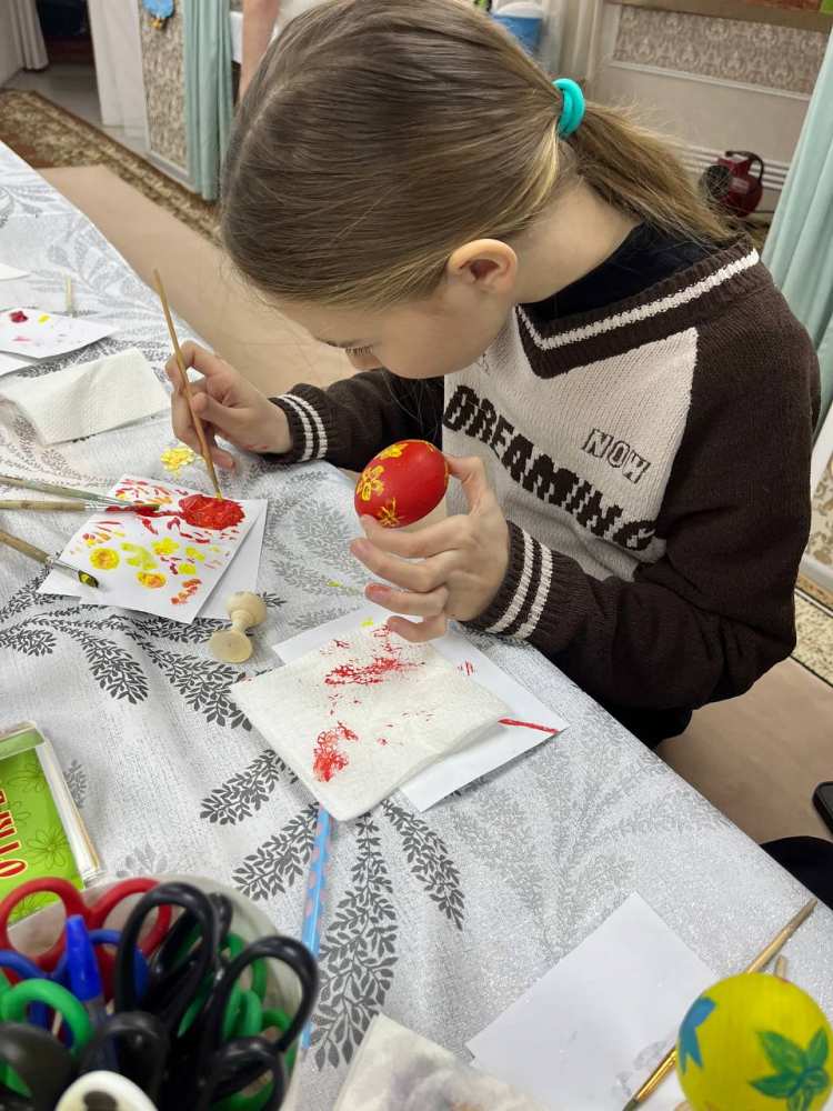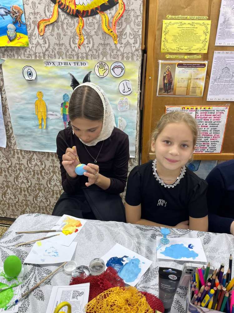 22 марта 2026 года после Божественной Литургии в учебном классе ВШ "Родничок" при храме свт. Николая Чудотворца под руководством педагога воскресной школы, Кашкоровой Ирины, прошел мастер-класс для детей по росписи пасхальных яиц. Дети смогли проявить творческую фантазию при работе с красками и декоративными украшениями .