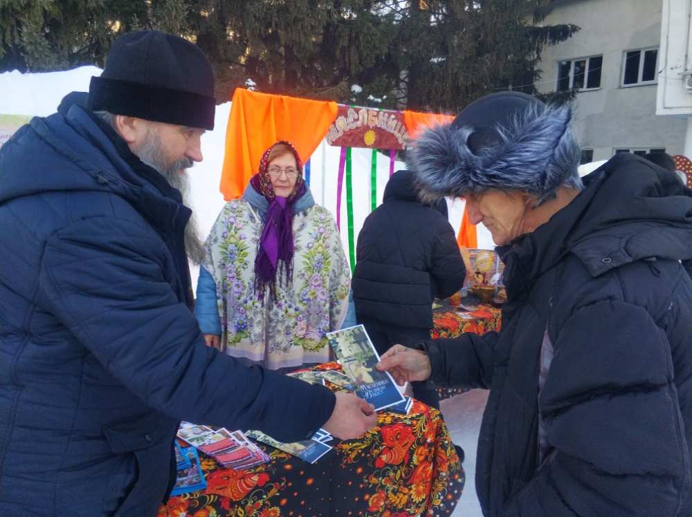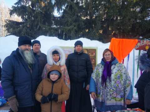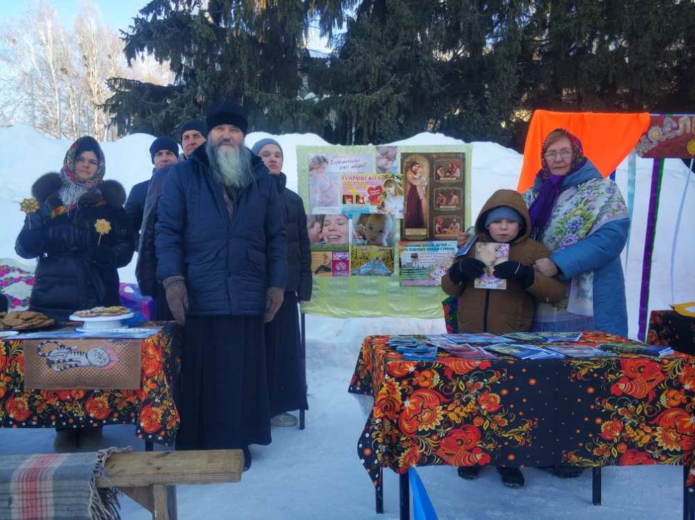 22 февраля 2026 года на районном мероприятии, посвященном проводам Зимы и Масленице, благочинный Старомайнского района настоятель Богоявленского храма отец Константин и группа волонтеров - прихожан храма провели миссионерскую акцию "Сохраним жизнь".
