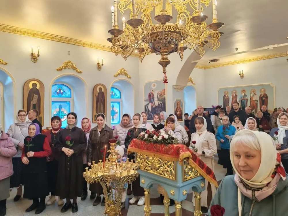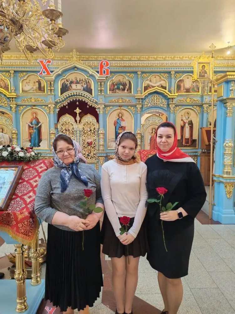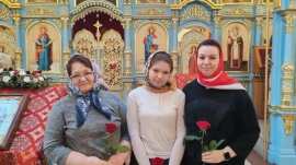 Настоятель храма, прот. Олег Беляев в своей проповеди, поздравил женщин с православным женским днем, пожелав им здоровья и благоденствия, поблагодарил за помощь храму и в знак внимания и благодарности вручил каждой женщине по розе.