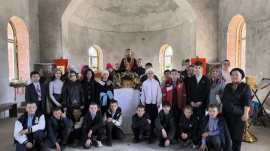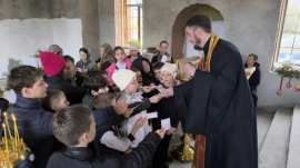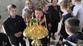 Ребята посетили храм, поставили свечи, написали записки с именами родных о здравии. Отец Сергий рассказал ребятам об устройстве храма, о значении богослужебной утвари в совершении Божественной Литургии.