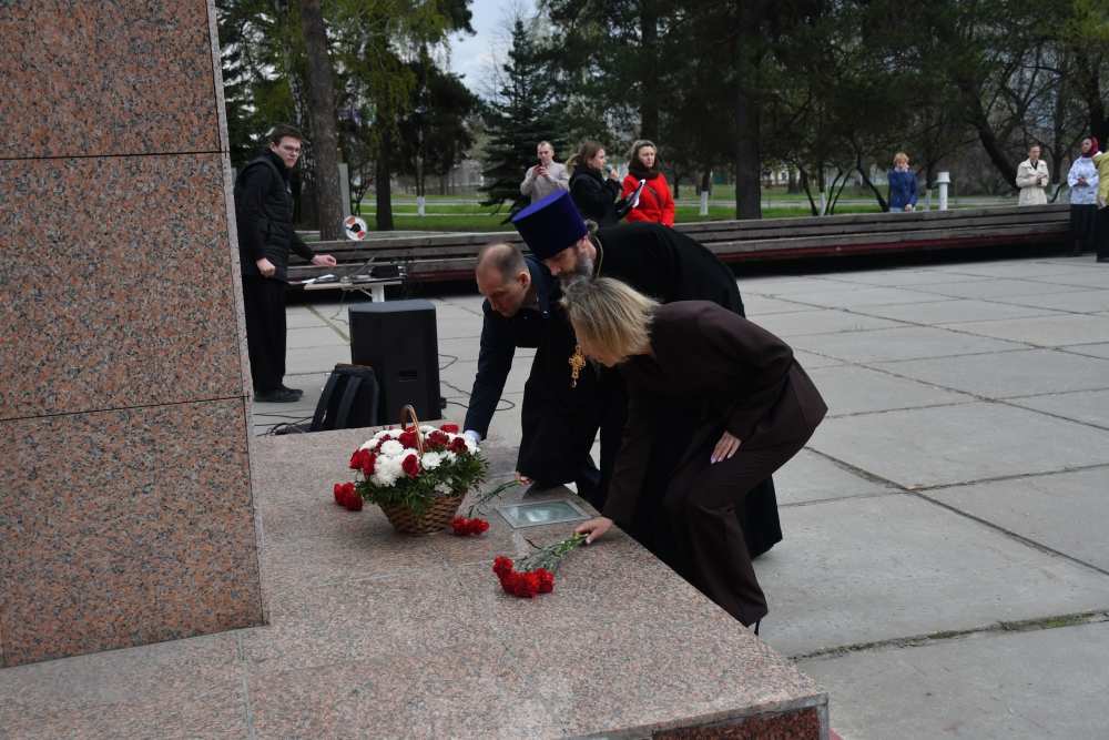 В воскресенье, 19 апреля 2026 года, у Монумента Славы и Вечного огня прошёл митинг-реквием в память жертв геноцида советского народа в годы Великой Отечественной войны. Клирик Архиерейского подворья при Свято-Никольском храме протоиерей Владимир Салин принял участие в этом мероприятии.