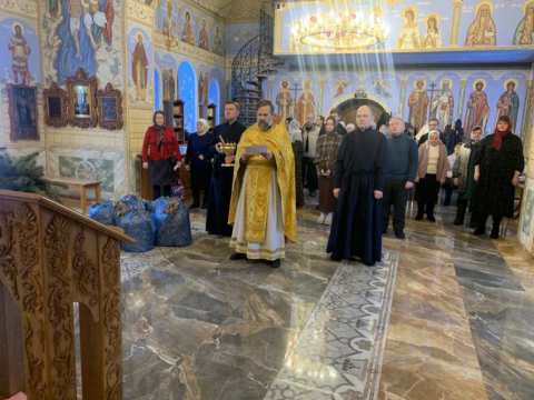 1 февраля 2026 года в храме вмц.Ирины п.Мирный после Божественной Литургии был отслужен молебен о Победе воинов СВО и освященны маскировочные сети.
