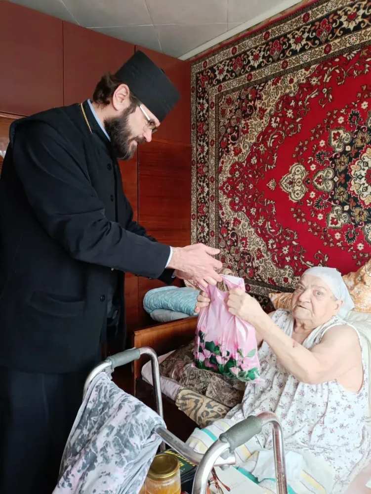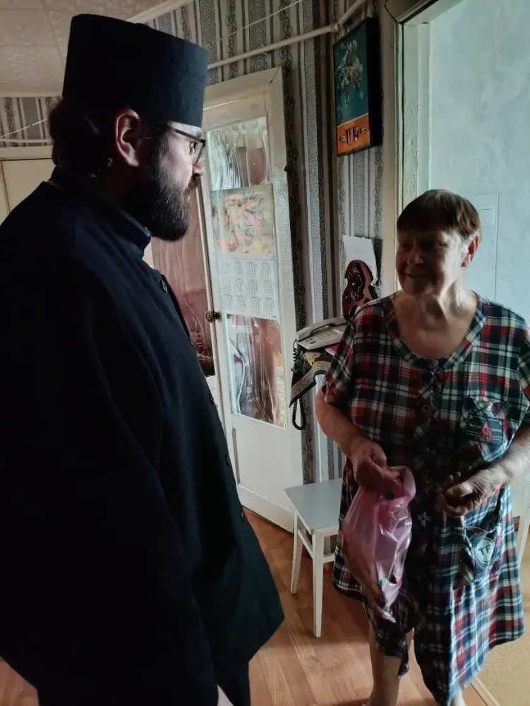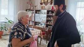 Прот. Олег Беляев, настоятель Покровского храма, совместно с участниками Библейской группы храма Кулаковым Владимиром и Паульс Екатериной посетили инвалидов и пожилых граждан поселка.