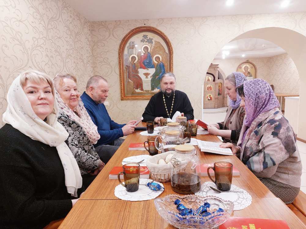15 марта 2026 года по окончании воскресного богослужения Крестопоклонной Недели Великого поста, в трапезной Свято-Татианинского храма прошло очередное занятие Библейского клуба для взрослых.