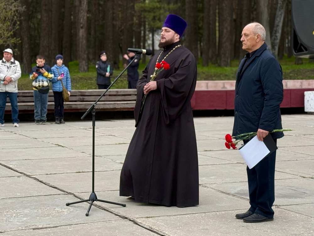 У памятника состоялся митинг-реквием. Священник Дионисий Преображенский, выступивший после представителей городской власти, обратился к ликвидаторам и собравшейся на митинг молодёжи. В своём слове он подчеркнул: подвиг чернобыльцев не имеет срока давности, и долг нынешнего поколения — хранить благой пример жертвенной и героической любви. Отец Дионисий поблагодарил ликвидаторов за их мужество, а молодых людей призвал быть достойными памяти героев.