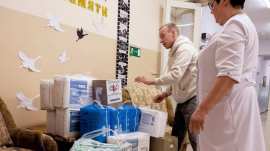 Помощь с теплом и заботой: 27 апреля 2026 года члены молодёжного братства «Пересвет» доставили собранные Гуманитарным центром Свято‑Татианинского храма «Всё для Победы» (п. Октябрьский) вещи в госпиталь ветеранов села Озерки.