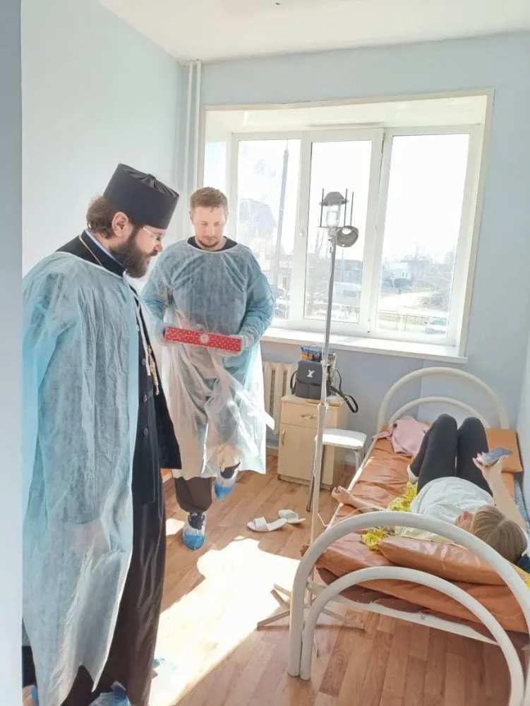 Отец Олег поздравил с праздником Пасхи сотрудников и пациентов больницы, пожелал всем крепкого здоровья и пасхальной радости о Воскресшем Господе.