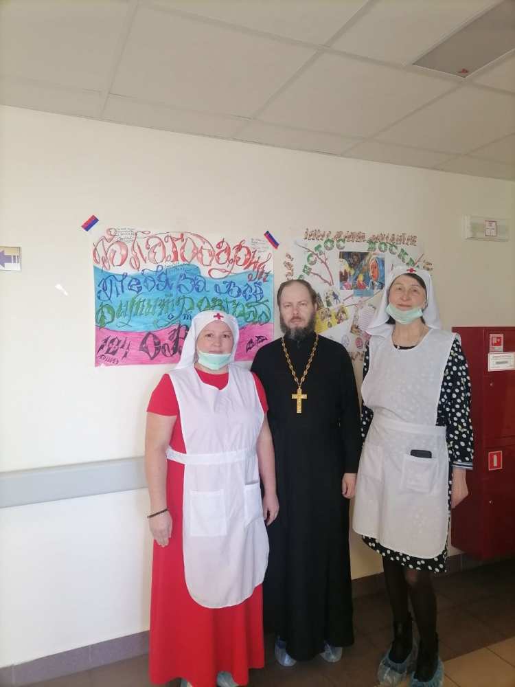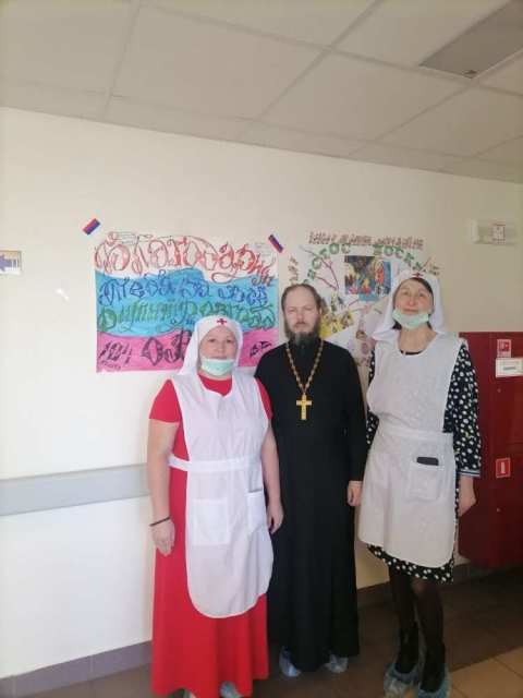 17 апреля 2026 года руководитель Епархиального отдела по церковной благотворительности и социальному служению иерей Вячеслав Еремеев с сёстрами милосердия посетил госпиталь МСЧ №172 ФМБА.