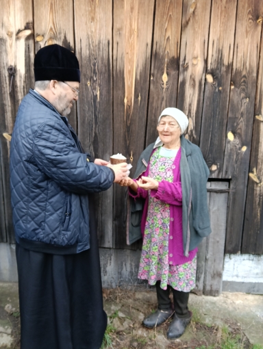 13 апреля 2026 года настоятель Свято-Введенского храма р. п. Тереньга протоиерей Александр Чеботарёв посетил с Пасхальной радостью пожилых прихожан, которые не смогли присутствовать на Праздничном богослужении.