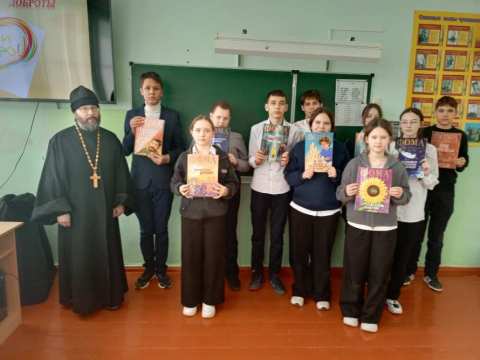 Настоятель храма свт. Николая Чудотворца с. Вороний Куст иеромонах Христофор (Кузьмин) рассказал ребятам об истории появления первой печатной книги и о роли православной книги в жизни христианина. Он напомнил, что книга может стать настоящим другом и наставником: особенно чтение духовной литературы помогает шаг за шагом идти по пути к добру и свету. В школьной библиотеке была организована выставка православной литературы.