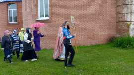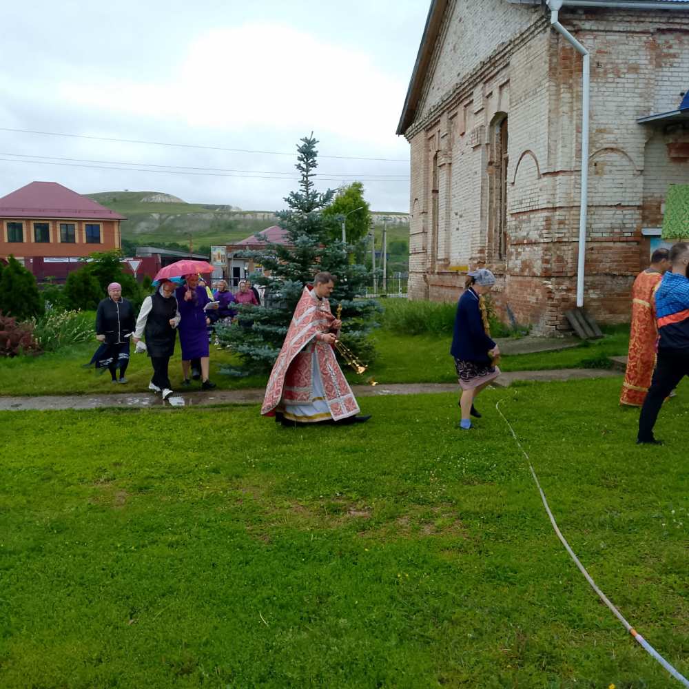 Затем прошёл крестный ход вокруг храма, затем руководитель молодежного отдела Сенгилеевского благочиния иерей Вячеслав Ковальчук совершил праздничный молебен, после которого о. Вячеслав обратился к народу с проповедью