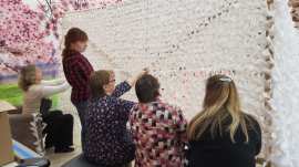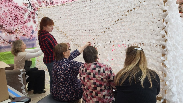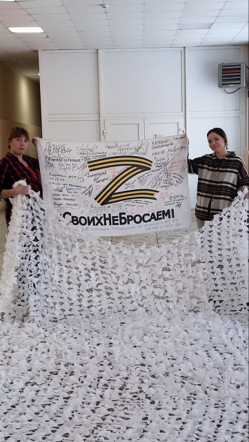 Работники Дома культуры оперативно закупили основу для сетей и ткань. Вместе со старшим поколением они уже приступили к выполнению боевой задачи.