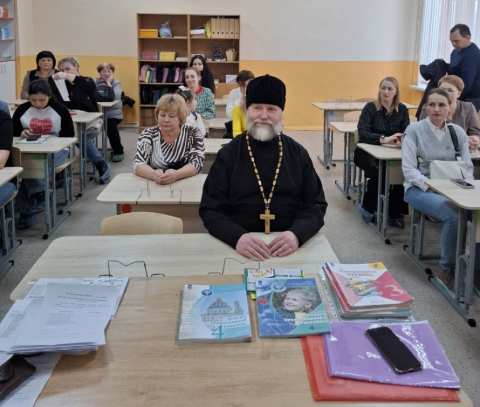 Основной вопрос выбор предмета из курса ОРКСЭ. Перед родителями выступил протоиерей Виктор Почобут. Батюшка кратко рассказал о православном вероучении и призвал родителей выбрать предмет Основы православной культуры (ОПК), потому что дети - православные христиане. Затем, выступила завуч школы Е. В. Зудова. Она рассказала о предмете и показала учебники по которым будут учиться дети. После недолгой дискуссии родители приняли решение, что в 2026-2027 учебном году их дети будут изучать ОПК.