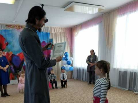 Священник наградил воспитанницу МДОУ Озёрский детский сад "Одуванчик" за участие в Рождественском конкурсе