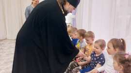 С праздником Светлого Христова Воскресения воспитанников и воспитателей детского сада поздравили: настоятель Свято‑Татианинского храма иеромонах Иона (Черкасов) и сотрудник Приходского Координационного совета Елена Макарова.