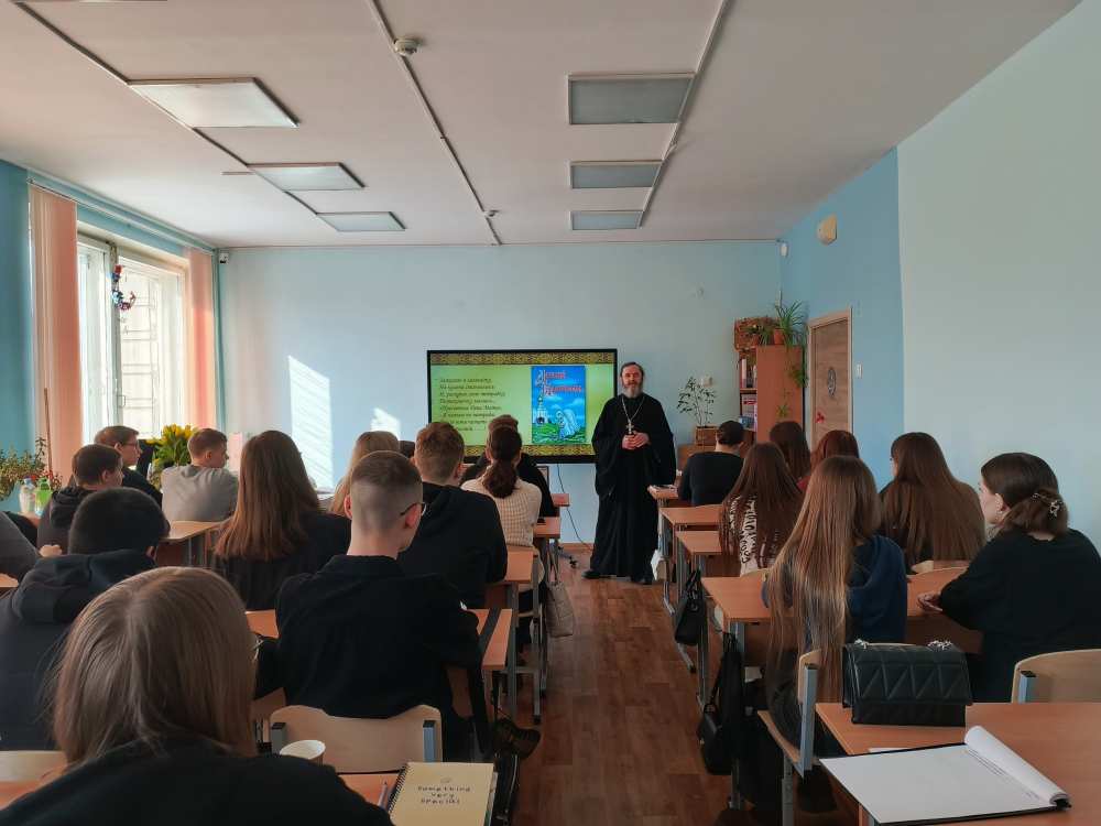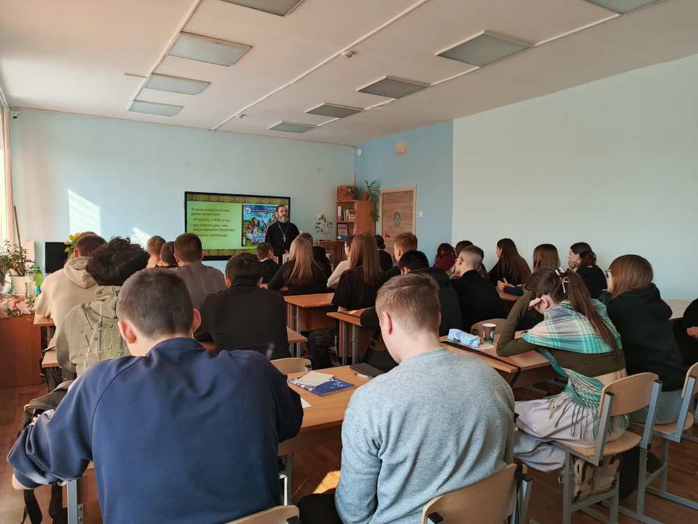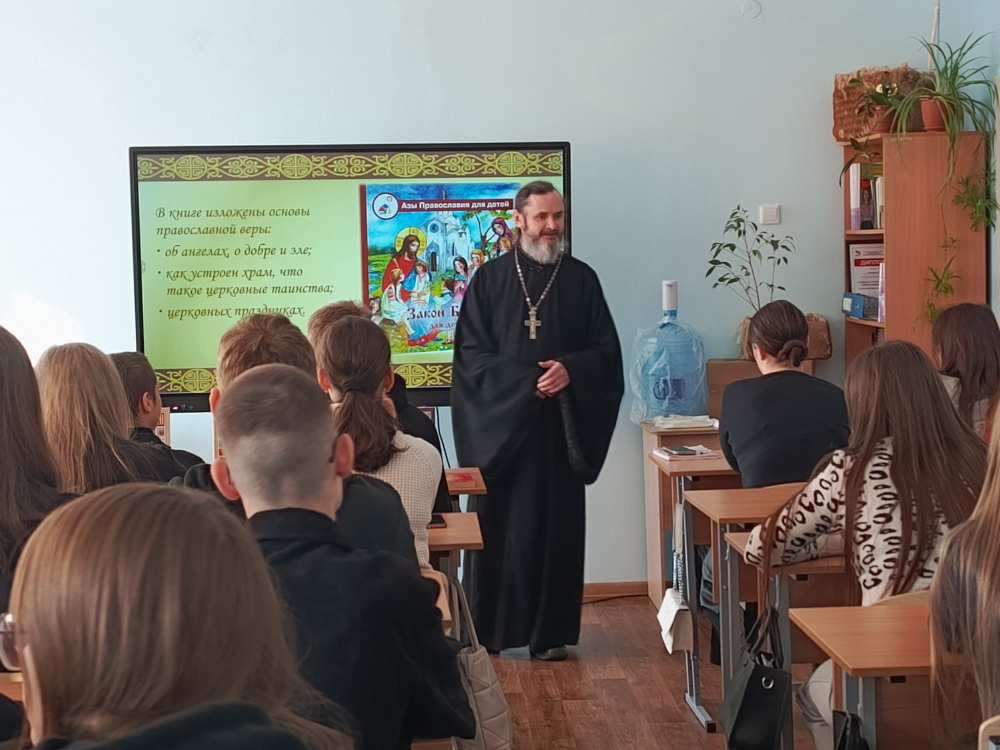 Встреча прошла в формате открытого диалога. Священник рассказал ребятам об истории книгопечатания на Руси, о том, как создавались первые рукописные и печатные книги. Кроме того, в ходе беседы были затронуты глубокие нравственные темы: отец Владимир побеседовал со студентами о значении 10 заповедей Божьих в жизни современного человека.