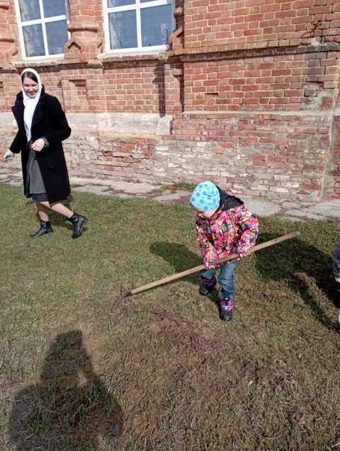 6 апреля 2026 года прихожане храма Святой Троицы села Молвино провели  уборку  прихрамовой территории к Великому Светлому празднику Пасхи