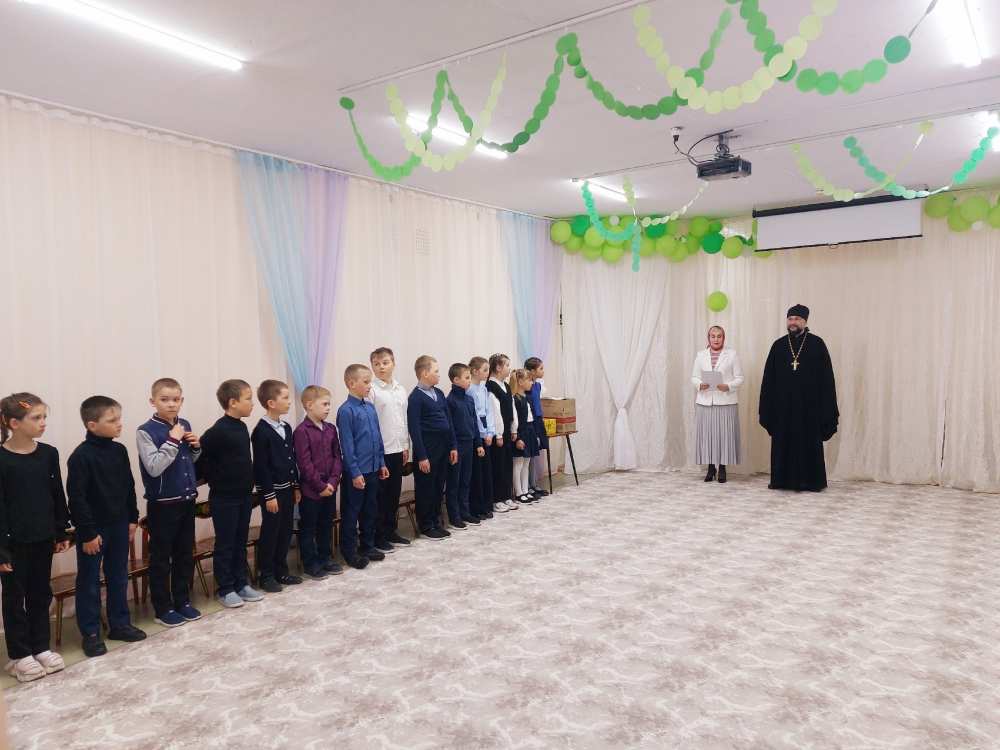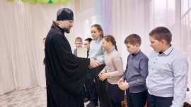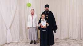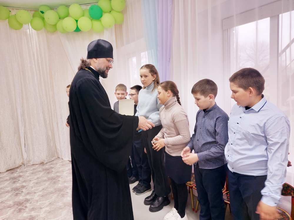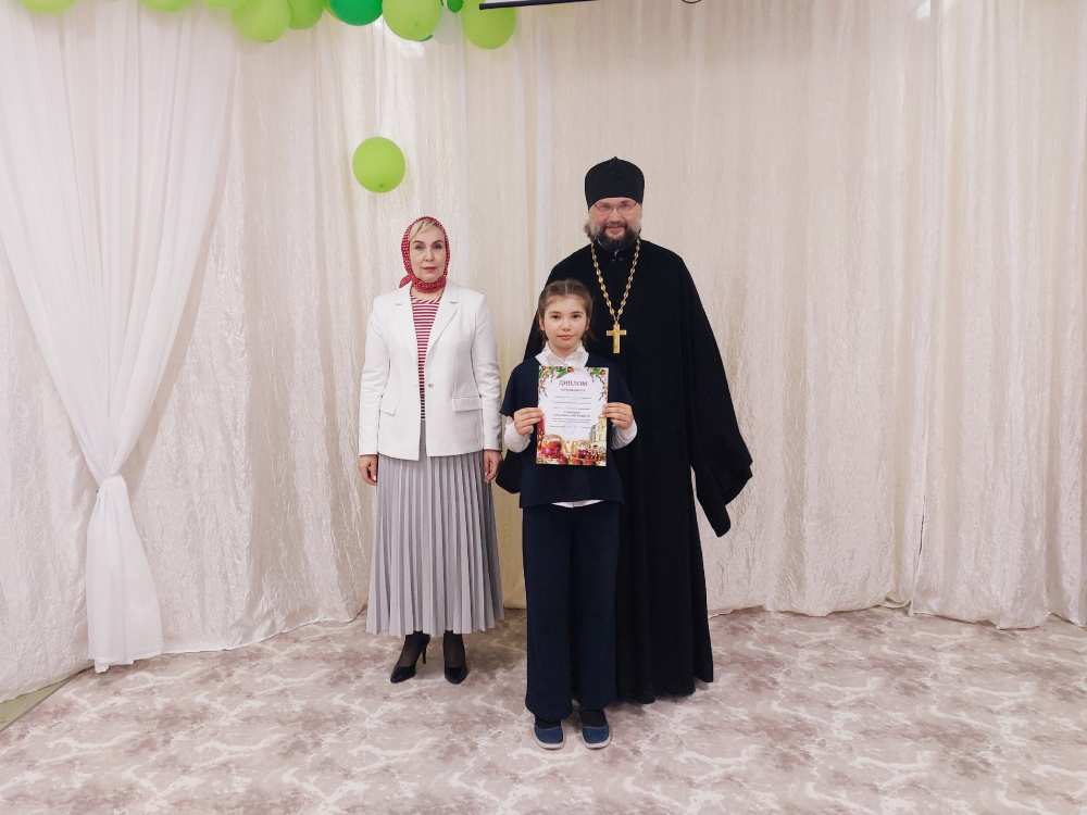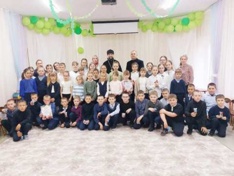 Вместе с иеромонахом Ионой учащихся поздравила Елена Макарова, сотрудник Приходского Координационного совета. Победители конкурса получили грамоты и сладкие подарки.