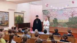 Настоятель Свято‑Татианинского храма иеромонах Иона (Черкасов) и сотрудник Приходского Координационного совета Елена Макарова поздравили учащихся с праздником Светлого Христова Воскресения. В своей речи отец Иона подчеркнул значение Пасхи как главного события христианского календаря, рассказал школьникам о смысле и традициях праздника, о его глубоком духовном содержании.