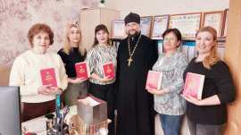 Настоятель Свято-Татианинского храма иеромонах Иона (Черкасов) 14 апреля 2026 года на второй день Светлой седмицы поздравил руководство и сотрудников Детского дошкольного учреждения "Василек" п.