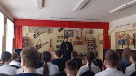 13 апреля 2026 года настоятель храма прп.Иоанна Дамаскина с Подкуровка посетил Солдатскоташлинскую школу. В актовом зале школы присутствовали школьники 6-8 классов и для них о.