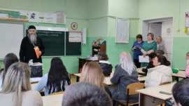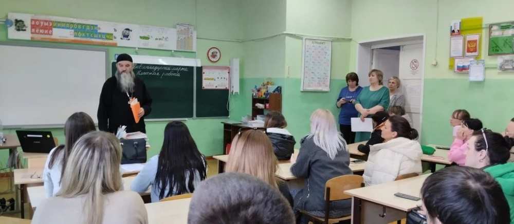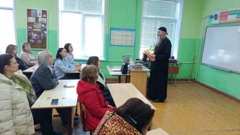 Заместитель директора по УВР Зеленикина М. Г. ознакомила родителей с нормативными документами и возможностями выбора модуля из шести предложенных в курсе. Были представлены педагоги с опытом работы по модулю ОПК Миронова М. А. и Чугунова Н. Е. На собрании выступили представители РПЦ. Благочинный  Старомайнского благочиния, настоятель Богоявленского храма протоиерей Константин сказал о необходимости закладки  духовно-нравственных основ и ценностей, традиционных для России, начиная с детского возраста, которые станут маяком в жизни взрослого человека, сталкивающегося с трудностями жизненных ситуаций и вопросами выбора пути их решения и преодоления. Рассказал о значении православия для нашей страны, дал советы по воспитанию детей, с точки зрения православного воспитания. Катехизатор Бобырева  И. Г. предложила вниманию родителей и педагогов видеофильм о модуле "Основы православной культуры", о его содержании, а также интервью с известными деятелями культуры и спорта по  этому вопросу, поддерживающими выбор этого модуля. Ирина Геннадьевна рассказала о периодах богоборчества и атеистического  воспитания в нашей стране и о проблемных вопросах современного духовно-нравственного воспитания, о возможностях самообразования и просвещения. В помощь родителям были предложены  образовательные школы,  интернет-каналы  православной тематики и фильмы.