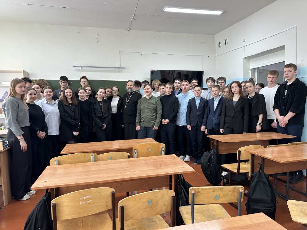 10 февраля 2026 года в Мирновской СШ имени С.Ю. Пядышева состоялась встреча и беседа настоятеля храма вмц. Ирины с учениками на тему праздник Сретение Господне и дня Правосдавной молодежи. Священник рассказал о истории, духовном смысле и традициях.