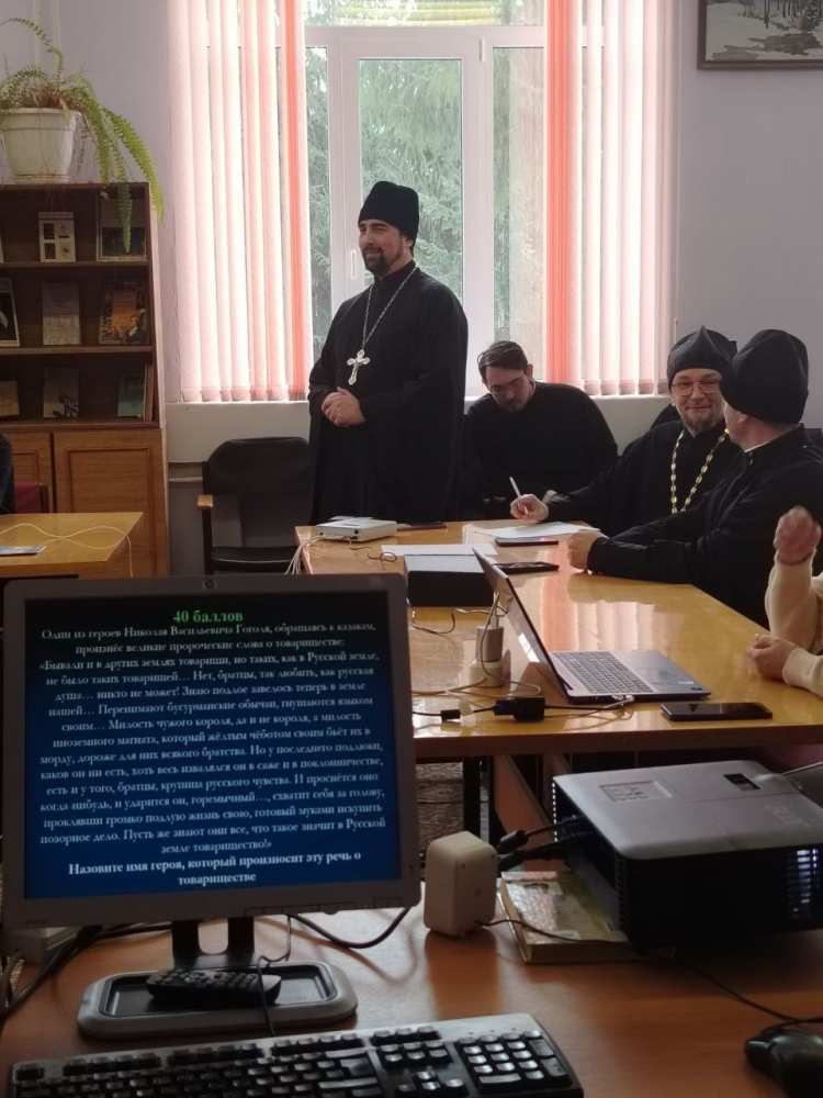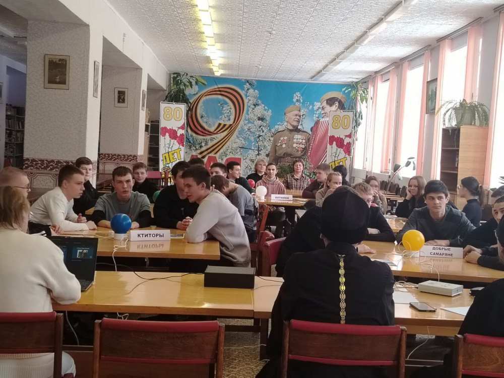 Затем для учащихся состоялась игра «Познай истину», приуроченная ко Дню православной молодежи. Встреча прошла в дружеском соревновательном духе: участники смогли не только проверить свои знания, но и в легкой, живой форме прикоснуться к основам православной культуры и традиционных ценностей.